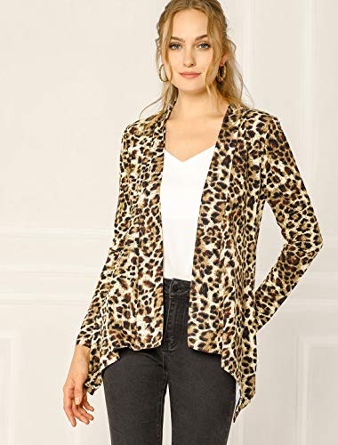 Un cardigan de frente abierto para los novios, esencial para los amantes del estampado de leopardo, es perfecto para usar con tonos neutros en el otoño. Con un material elástico y fluido y un estampado clásico de leopardo, esta pieza hace que cualquier atuendo sea fabuloso al instante.