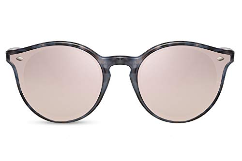 Gafas de sol con marco ronda y lentes espejados. Marco negro. Redondas lentes azul. Lentes espejadas. Estilo unisex con protección total 100% UV400 de categoría 3.