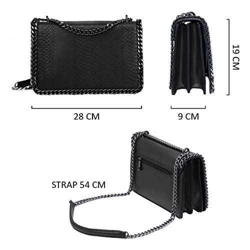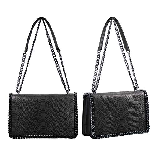 - DESIGN & TIPO DE BOLSOS: Bolso bandolera de cadena con solapa estampada en piel de serpiente pitón, contornos de cadena. Elegante y moderno, un imprescindible! Perfecto para el diario, ciudad, fiesta, viajes.
