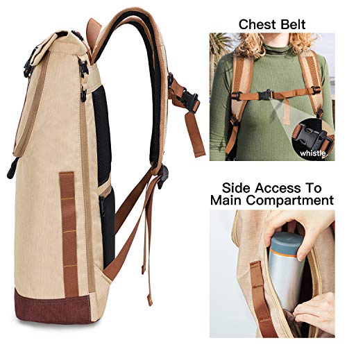 ? DISEÑO PENSADO & ANTI ROBO: La parte superior plegable con cierre de hebilla mantiene tus artículos seguros. La mochila para la laptop es cómoda de usar debido a su material acolchado en la espalda y correa ajustable del hombro. La correa del pecho puede balancear el peso y reducir el estrés de tus hombros, el silbato para emergencias es un diseño práctico para actividades al exterior.
