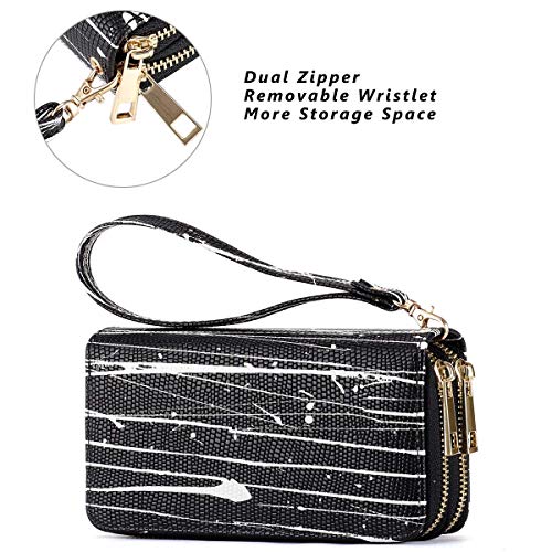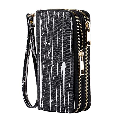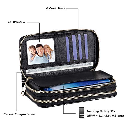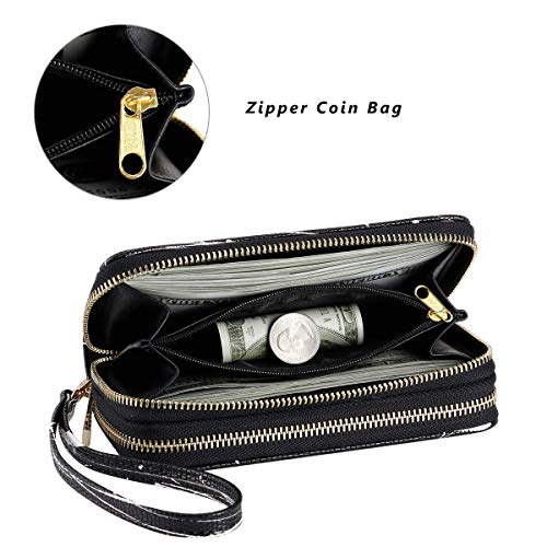 HAWEE Mujer Cartera Larga de Embrague Doble Cremallera Teléfono Billetera Señora Piel Monedero Mujer Grande con…