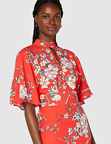 Con un ligero toque setentero este favorecedor vestido solo necesita unas sandalias de tacón para que seas la reina de cualquier fiesta. El corte por encima de la cintura deja una falda larga lisa con un poquito de corte acamapanado y unas aberturas laterales. La parte de arriba, sin embargo, es muy original gracias a sendas aberturas trasera y delantera en forma de triángulo, y unas mangas anchas y vaporosas. Todo un acierto.