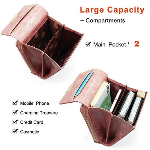 Pequeño y espacioso: Este lindo mini bolso de teléfono móvil tiene 2 bolsillos principales, 3 compartimentos, 5 ranuras para tarjetas. Puede llevar tus artículos esenciales diarios, como teléfono, cargador, maquillaje, llaves y otros artículos pequeños.