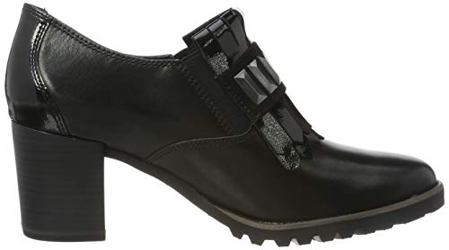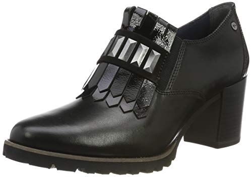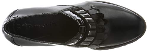 Blucher de Tamaris modelo 24410. Blucher de charol, con flecos en el empeine que le dan un toque muy elegante y distintivo. Tacón cuadrado de 6 cm muy cómodo y plantilla acolchada. Elegancia y comfort en el mismo zapato.