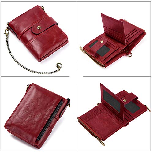 Perfecto para el Bolsillo: 9cm x 12cm x 3cm. Tamaño ideal para en el bolsillo del pantalón. Biker cartera para mujer con cadena (ca. 26 cm) es extremadamente práctica, durable y resistente. Monedero mujer cremallera con cadena de seguridad desmontable, es bastante robusta, protege tus objetos de valor.