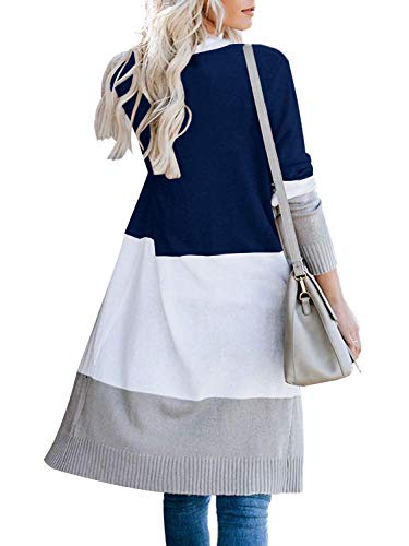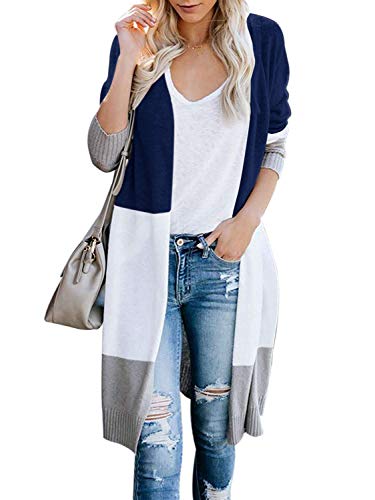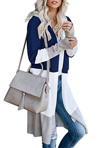 WNEEDU – Sudadera de punto con parte delantera abierta para mujer, con cuello abierto, color bloque de color