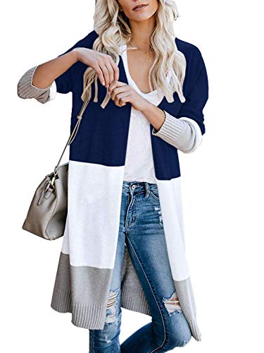 Boho y cárdigan básico para mujeres, holgada y elegante chaqueta frontal abierta, suave y cómoda, hecha de algodón suave. Cuenta con hermosas rayas que se unen con un material cálido y cómodo. El material de punto es ligero, pero lo suficientemente acogedor para una noche de otoño. Puedes tirar fácilmente este cárdigan sobre jeans y una parte superior, un bonito vestido, o un pelele para un aspecto elegante.