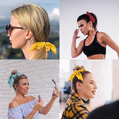 Material de alta calidad: los coleteros están hechos de tela de gasa, tela lisa que no daña tu cabello brillante. Con banda elástica en el interior, garantiza el efecto de fijación del cabello.